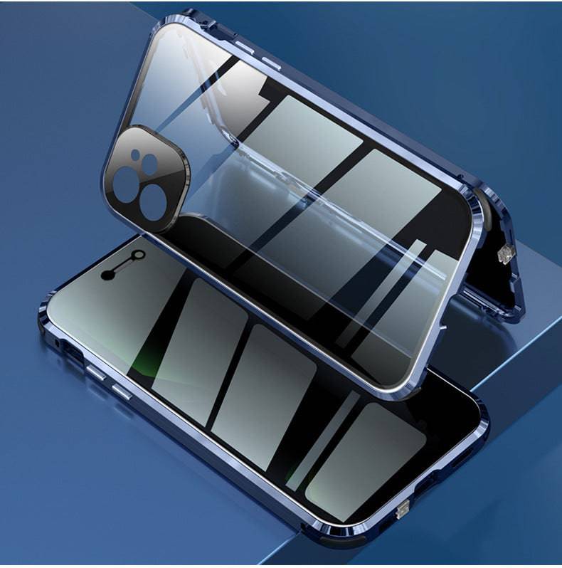 - Our two-sided glass case upgrade comes with a full-cover lens for scratch and wears resistance.No magnetic + straight edge metal design perfectly fits the mobile phone. Compared with the market glass shell hollow-out lens, easy into the ash, easy to scratch.