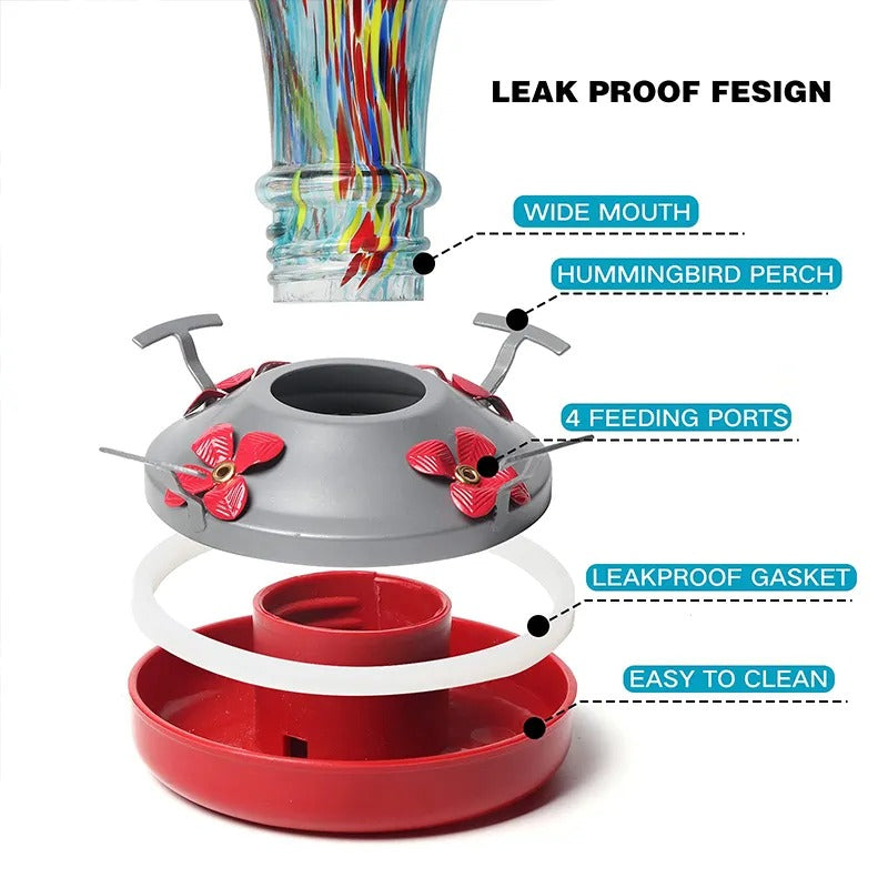 Mangeoire à colibris en verre soufflé à la main Shirem - 25 onces
